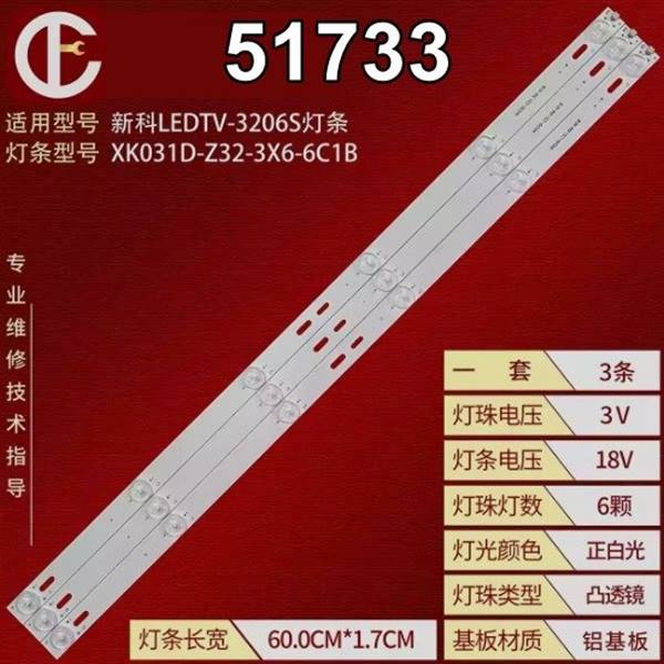 XK031A-Z32-3X6-6C1B, 6 LED, 610mm, 3V