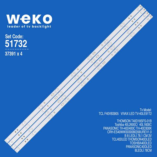 ЛЕД ЛЕНТА ЗА: TCL F40VB3905, VIVAX LED TV-40LE91T2, THOMSON T40D18SFS-01B, TOSHIBA 40L2600C, TOSHIBA 40L1600C, PANASONIC TH-40D400C, PANASONIC TH-40D300K