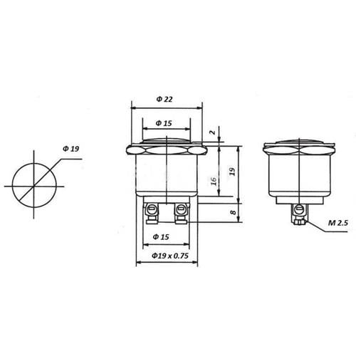 Тастер метален 2P (ON)-OFF, D97 PBS-28B-2, 4A/125Vac, 3A/250Vac