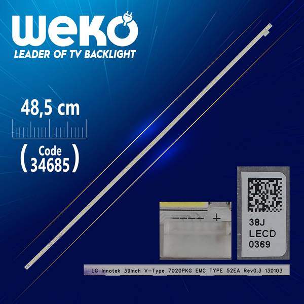 LG INNOTEK 39INCH V-TYPE 7020PKG EMC TYPE REV0.3 130103, 485mm, 52 LED, (LL-518)
