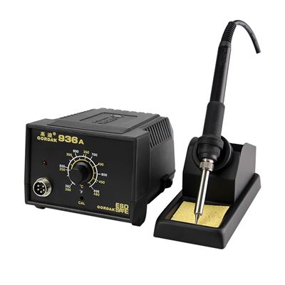 GORDAK 936А Рачка за лемење со регулација на температурата погодна за монтирање и обработка на SMD компоненти, за лемење и поправка на електронски елементи. Има издржлив керамички елемент за греење за подолга употреба.